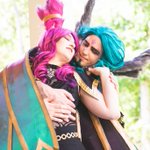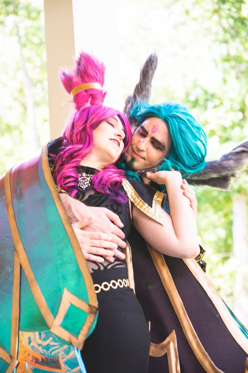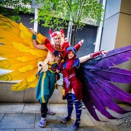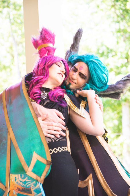 (2/2)These lovebirds are so similar to us, and they're so fun to cosplay! We've done a ton if versions of them, and can't wait to do more! What's your favorite version of the birbs? #cosplay #couplescosplay #leagueoflegends #xayah #rakan @LCSOfficial @lolesports @LeagueOfLegends