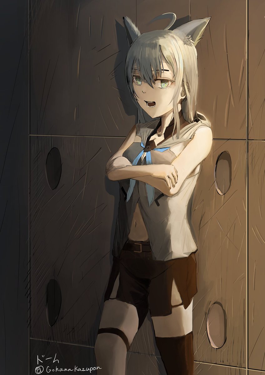 #絵フブキ ふぶきさんは壁にもたれ掛かる時片足を壁につけるとか何とか切り抜きで見ました