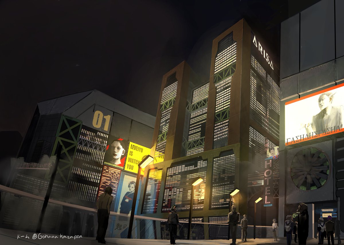 #ATYPEfantasy #松養鶏場 #イラスト 悪魔族の背景のクソデカビルヂング