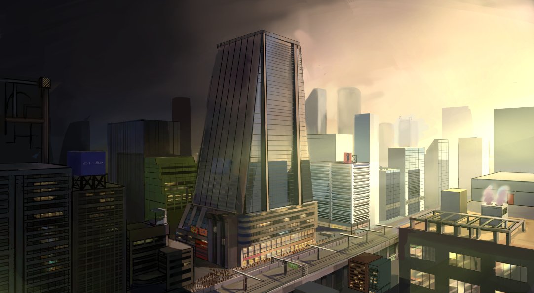 6 16 #ATYPEfantasy #松養鶏場 #イラスト 悪魔族の背景のクソデカビルヂング 21/03/13 22:26