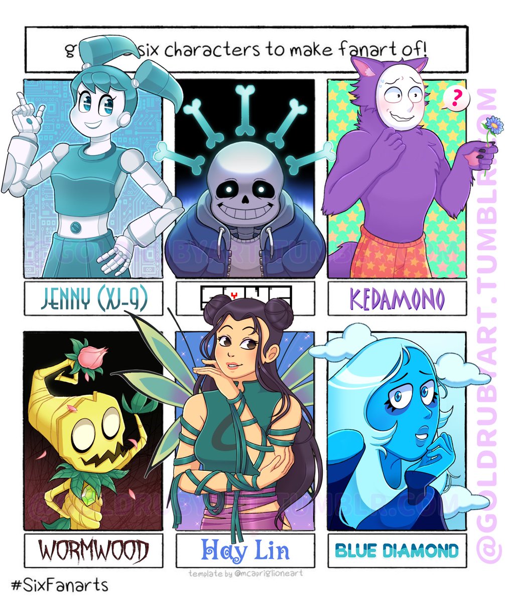 Some #SixFanarts requests I got from instagram: Jenny XJ-9, Sans, Kedamono, Wormwood, Hay Lin & Blue Diamond! #undertale #Popeetheperformer #mlaatr #witch #DontStarveTogether #stevenuniverse