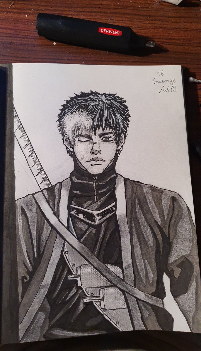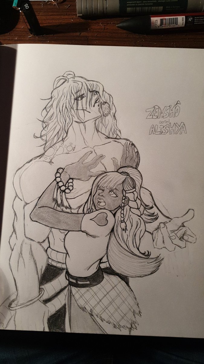Jour 7 en cours, j'aurais pas finis avant minuit alors je vous le montre maintenant #inktober2019 J'aime vraiment mais 2 OC ^^