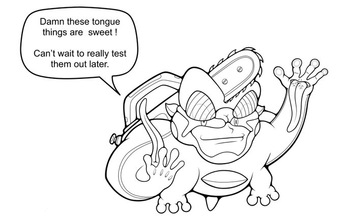 Inktober Day 10- “The sewer superhero Frogsaw!” The number one Brainsaw and relative (technically) fan hops around the sewers cutting down the strange creatures lurking within it with his trusty chainsaw backpack! … wait.. what ? He’s from the future ?! #inktober #superhero