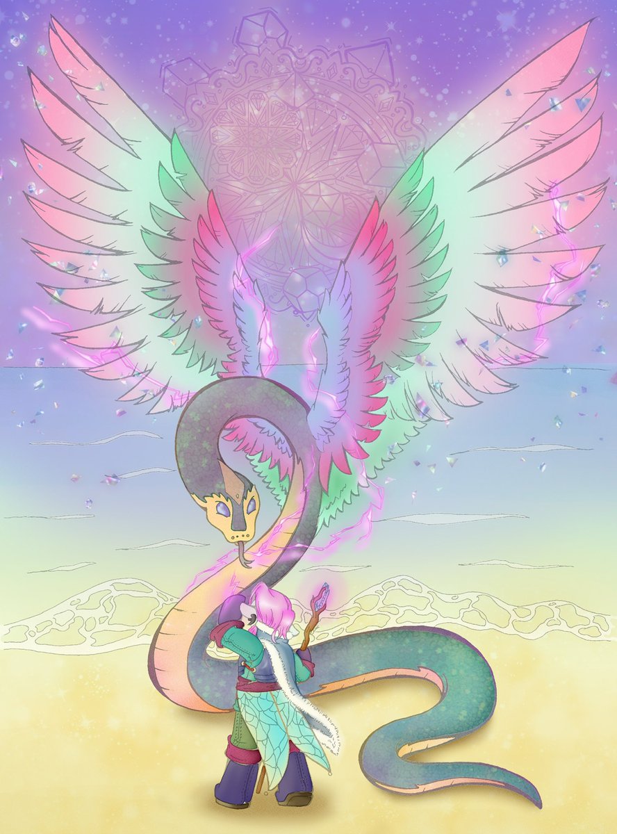 Not my usual style but in celebration of 8yrs and commemorating the apogee solstice. The energies of the lay lines light the skies of Exandria and beyond. Time to dive into ep 51 with Bells Hells! @CriticalRole #CriticalRoleCampaign3 #criticalrolefanart #CriticalRoleArt