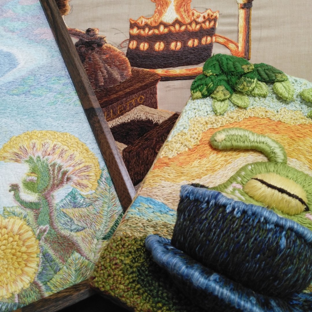 #2月になったのでフォロワーさんに自己紹介しようぜ 最近イラストやフェルトばっかり出してるけど、本当は『刺繍作家』でごじぇます〜w (⚠️人間ではありません。刺繍妖怪でふ ....(((( ᜊ ◉ )ᜊ