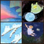 自作、手刺繍。『🇺🇦ウクライナの空』 2022年6月に完成。 原画は娘が描いたペン画(許可済み)。 #Twitter文化祭2022 #ハンドメイド #ハンドメイド好きさんとつながりたい #刺繍