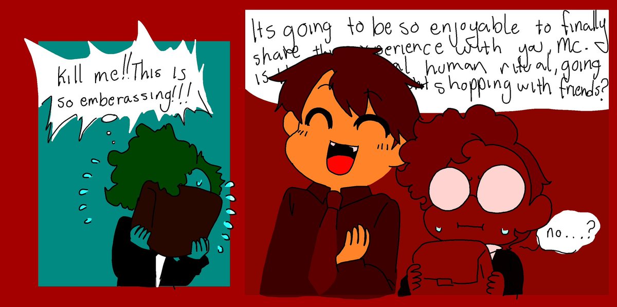 MC tries her best once again to obtain even one bra, but she is no match for the prince of the devildom and all his tricks!!! Better luck next time ;p #obeymefanart #obeymediavolo #diavolo #barbatos #comics #obeymeshallwedate
