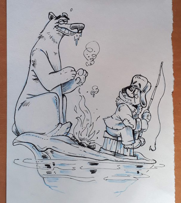 #inktober2019 thème du jour : #geler ça caille, même pour nos amis les ours polaires ;) #inktober2019day4 #inktober #inktoberfreeze #inktoberjour4