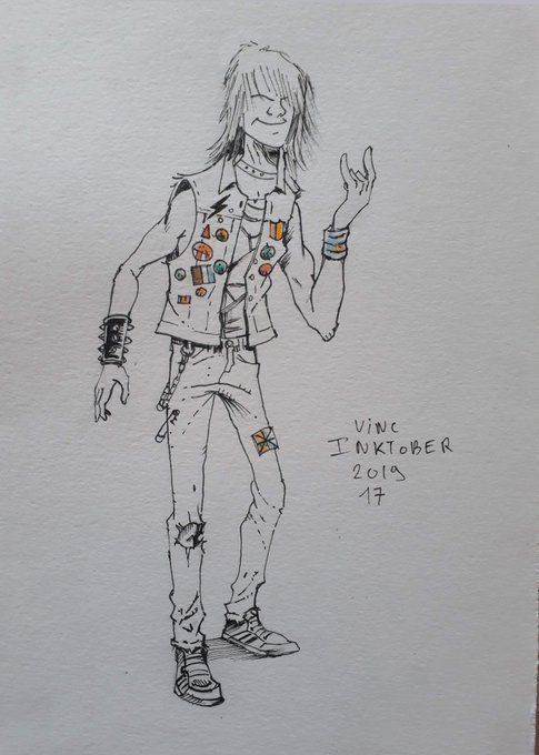 #inktober2019 Thème de ce mercredi #ornement on sort les décos et voilà : un bon vieux hardos des années 80 : du cheveux gonflé et du badge à gogo ;) #Inktober2019day17 #inktober2019ornament #drawingchallenge #art #drawing #ink #cartoon #métalleux #ornament #hardos