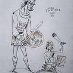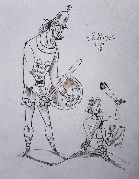 #inktober2019 Thème du jour #fronde Bon, j'ai hésité un peu... Thierry la fronde ou David et Goliath, allez, pile ou face, le gagnant est... #Inktober2019day19 #inktober2019sling #drawingchallenge #art #drawing #ink #cartoon #sling #fronde #davidetgoliath