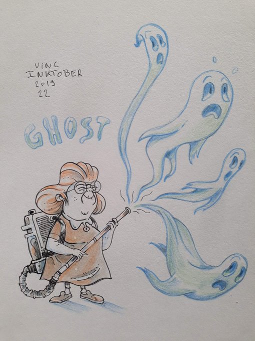 #inktober2019 Thème du jour #fantôme ; le surnaturel, un petit coup d'aspirateur et hop du balai ! #Inktober2019day22 #inktober2019ghost #drawingchallenge #art #drawing #ink #cartoon #fantôme #ghost #ghostbusters #supermamy