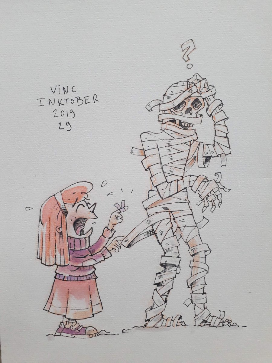 #inktober2019 Thème du jour #blessé, un petit bobo qui créé bien du souci #Inktober2019day29 #inktober2019injured #drawingchallenge #art #drawing #ink #cartoon #momie #injured #mummy