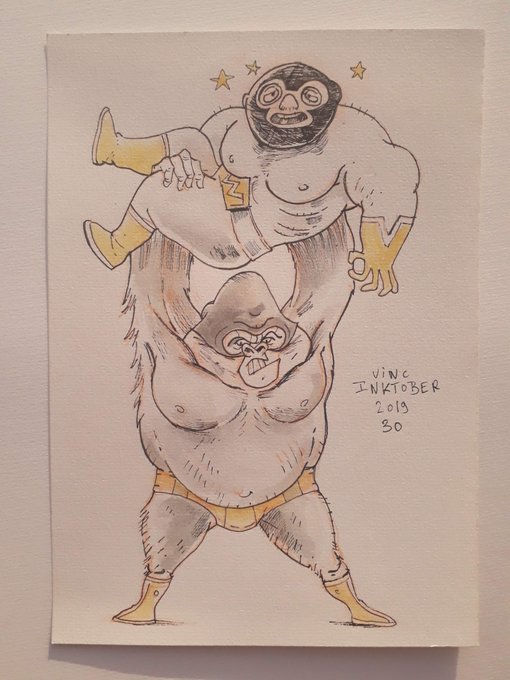#inktober2019 Thème du jour #catch ou #attraper, gare au goriiiille #Inktober2019day30 #inktober2019catch #inktoberday30 #drawingchallenge #art #drawing #ink #cartoon #gorilla #illustration