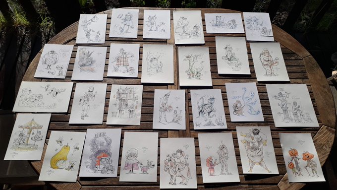 #inktober2019 2 jours que j'attends un rayon de soleil pour prendre ma petite photo de fin ! Ca y est, tout est là, sauf les 2 ou 3 déjà donnés. #allinktober #finishedinktober #endinktober #illustration