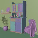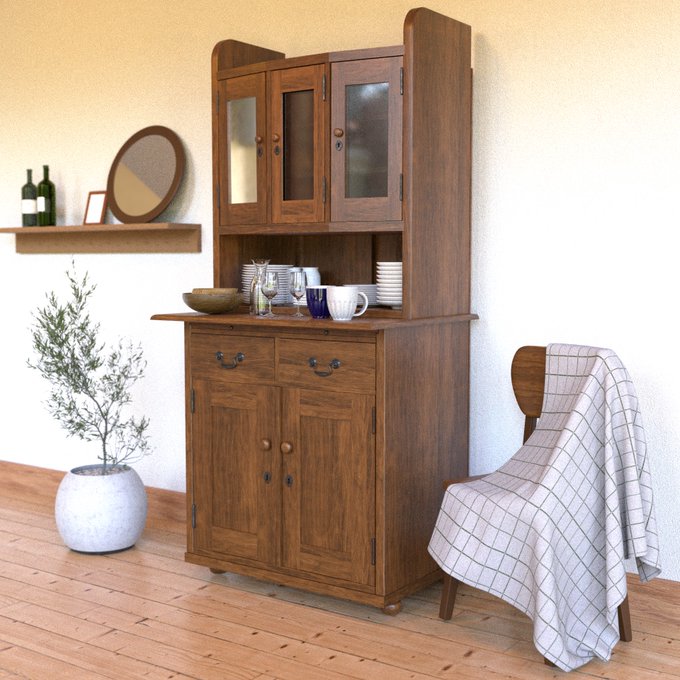 今夜の #深夜のモデリング60分一本勝負 のお題「食器棚」提出後、小物を追加して完成させました☕ #b3d #blender twitter.com/Gonta__N/statu…