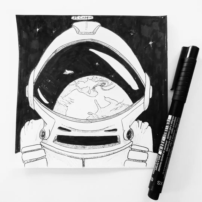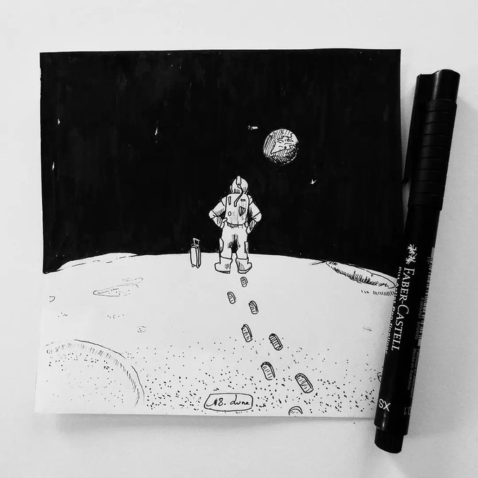 18. Lune J'imagine que c'est mort pour rentrer à pied ? 😕 #inktober #inktober2021 #inktoberday18 #inktobermoon #moon