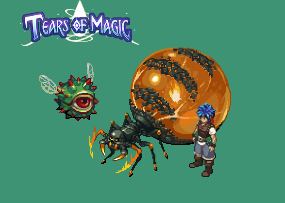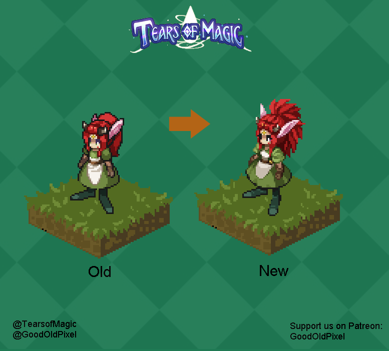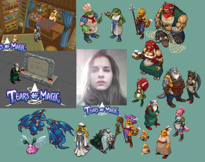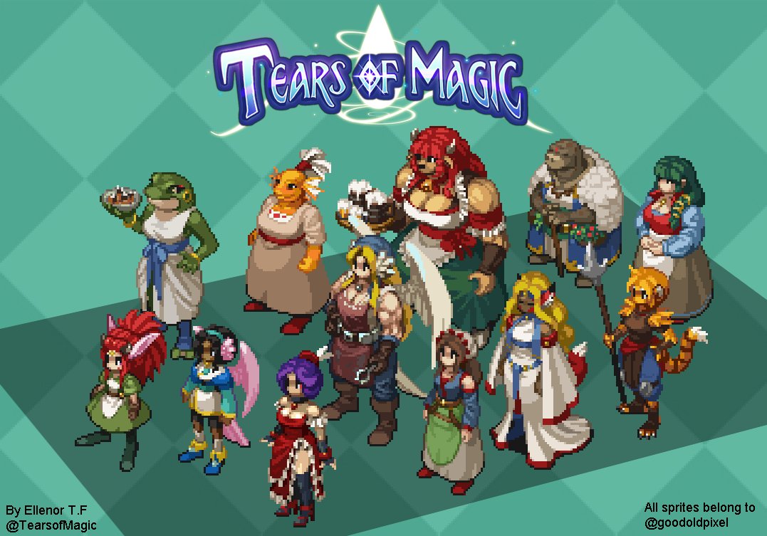 Tears of Magic - Sprites Sprites in Tears of Magic are way larger than games from the 90's and 00's, to match the higher resolution of modern hardware. Here is a comparison with #BreathOfFire sprites to grasp a bit of the difference. What do you think? #PixelArt