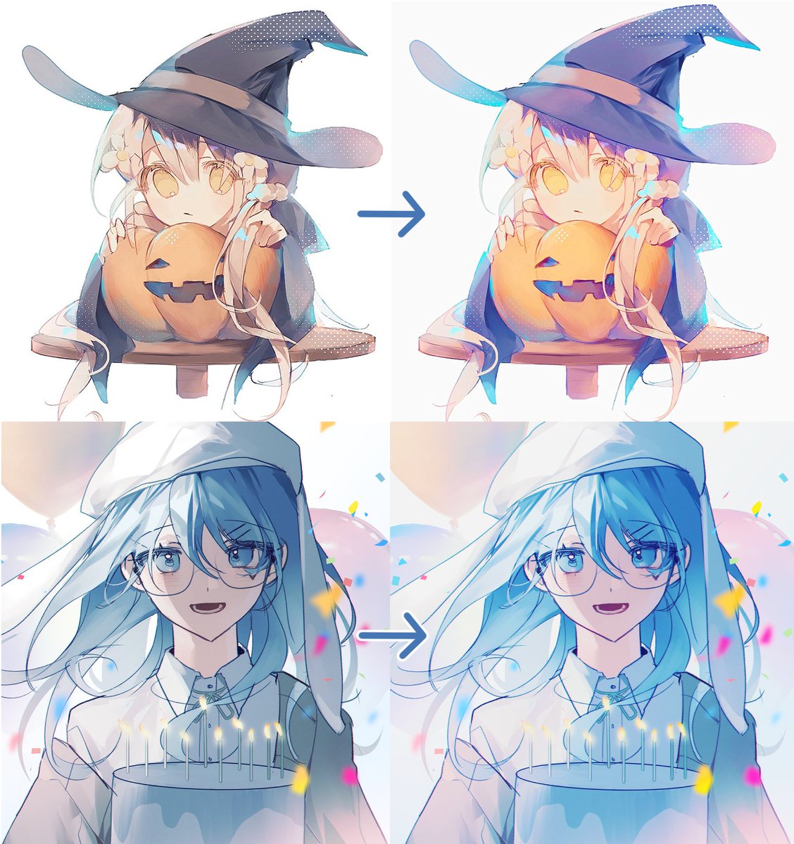 형광 보정 오토액션 클립스튜디오에 무료 배포했습니다! 혼자 쓰려고 만들었다가 너무 마음에 들게 나와서 배포해요 어느 색이든 이쁘게 나와요🥺💗 assets.clip-studio.com/ko-kr/detail?i…
