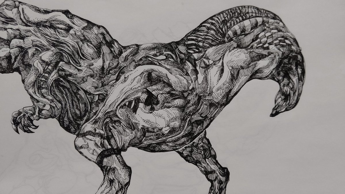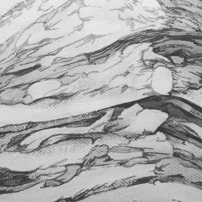 「狼狽」105×155 ペン、紙 二匹の狼が慌てふためく様子をイメージして見えてきたものを描きました。 久々にやりたかった線画のみのモノトーン作品です。またやろ。 4/27〜4/30 TSUKUSHI TEAM SHOP(BASE) tsukushiteam.official.ec #artroomingMKT