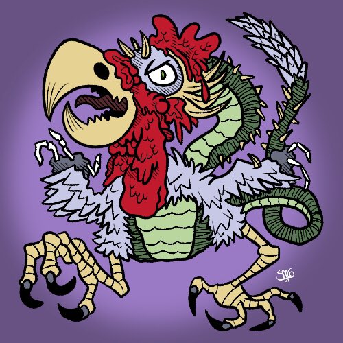 D&December DAY 3: Cockatrice The Poundland version of a basilisk, these free range horrors can turn anyone to stone with its petrifying breath #dndecember #dnd #rpg #TTRPG #dungeonsanddragons #dndart #cartoon #dungeonsanddragonsart #monsterart #cockatrice