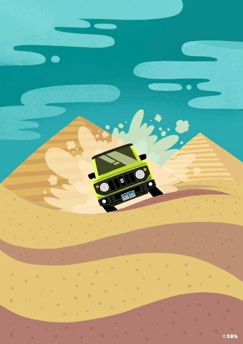 11 57 \新シリーズ スタート‼/ イラストレーター りおたさん @riota2gaoe とのコラボで世界の名所と自動車を描く新シリーズ! 今回は、砂塵を巻き上げエジプト砂漠を疾走するジムニーです🏜 #グーネット #りおた車イラスト ※イラスト上の演出です。自動車は走行が許された場所を走りましょう。 22/05/25 20:11