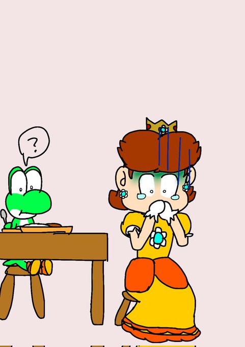 ヨッシーくん、大飯喰らいのくせに料理は下手くそなようです #絵描きさんと繋がりたい #PrincessDaisy #よひ