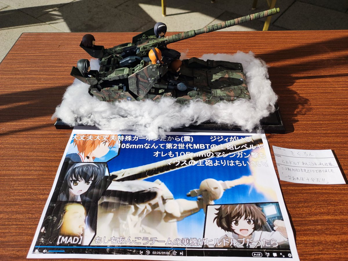 ヲタクな美術展にて、「もしもあんこうチームの乗機がヒルドルブだったら」を展示中です。 素組みの状態から作り直しました! 対戦よろしくお願いします🤓 #くまフェス2022 #くまフェス