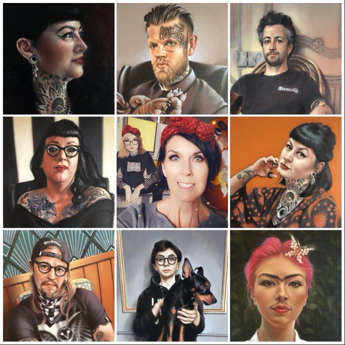 🌟#PortfolioDay 🌟 I draw & paint fun portraits of colourful, real people in striking interiors, sometimes with pets, tattoos, accessories and often with a complicated perspective thrown in 😮 #oilpainting #paint #art #artwork #portraitart #portfolio #portraits #PortfolioDay2022