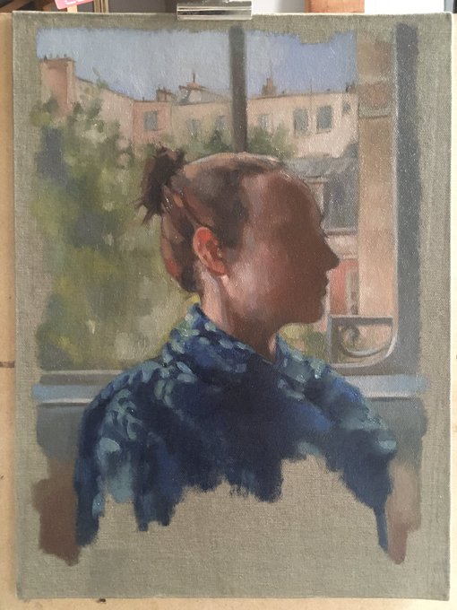Painting vs Palette 🎨 First layer in on my daughter’s portrait - back to art school tomorrow so I guess I shall have to be finished it later without her 💓 #oilpainting #painting #peinture #art #artist #portraits #Women #ArtistOnTwitter #WomensArt #womanartist #daughterlove