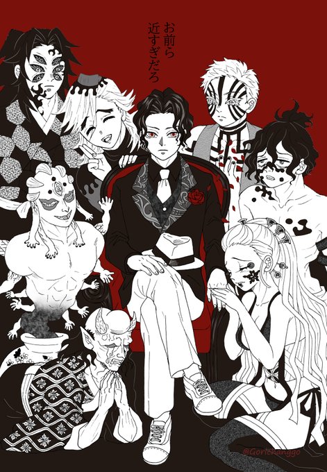 143 798 一度描いてみたかった上弦集結 個々のキャラが濃すぎて描いてて胸やけしたけどやっぱり鬼のビジュアル好きぃ~~♡ 22/06/15 00:09