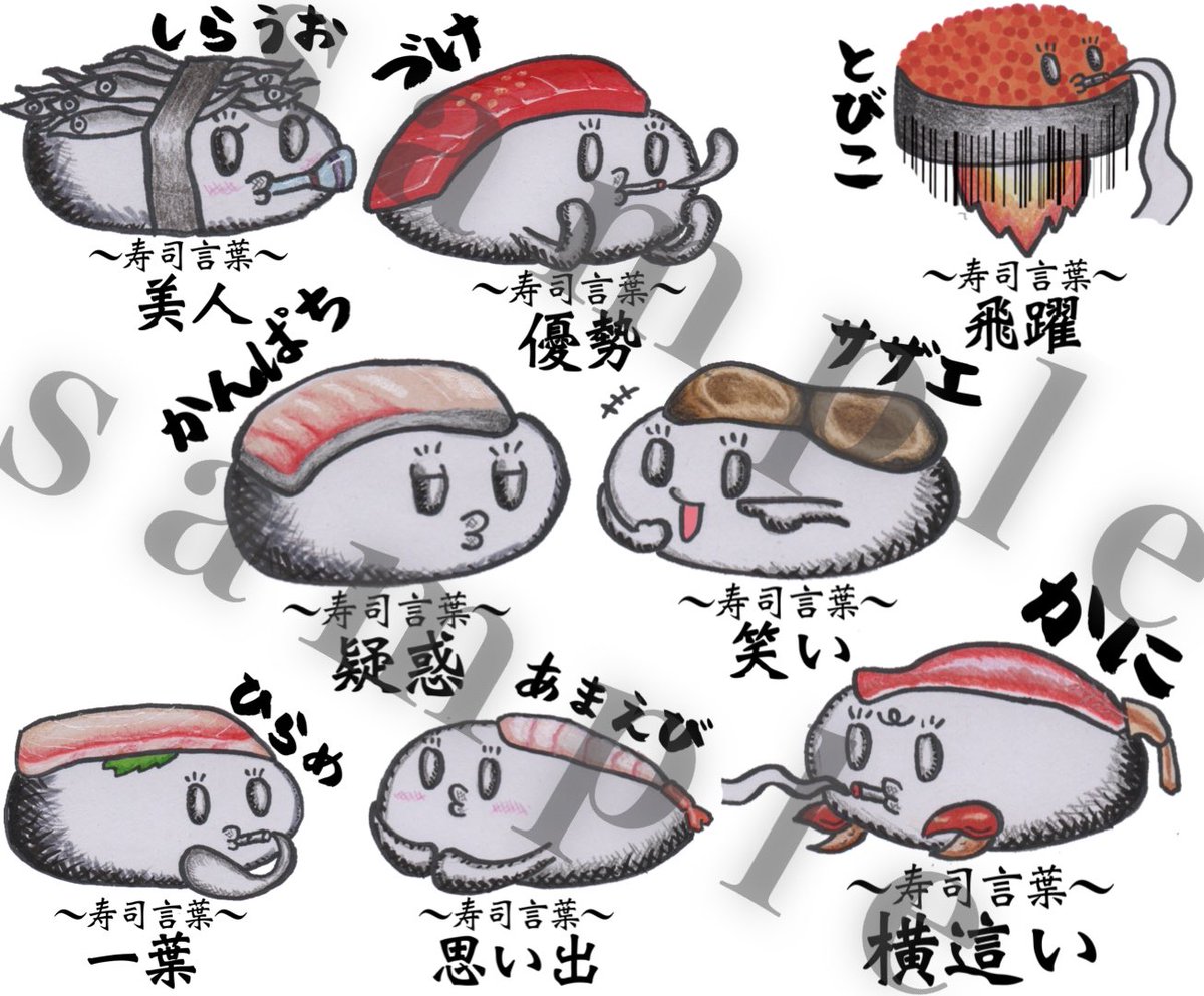 LINEスタンプ[寿司言葉編4]通過しました。 連投すれば相手は寿司脳になります。 運命線も伸びます。(´>ω∂`) #LINEスタンプ #落書きギルド #アトリエの系譜 #落書向上委員会 #絵師達 #イラスト王国 #創作の狼煙 #drawing #illustration #art #秋の創作クラスタフォロー祭り line.me/S/sticker/1733…