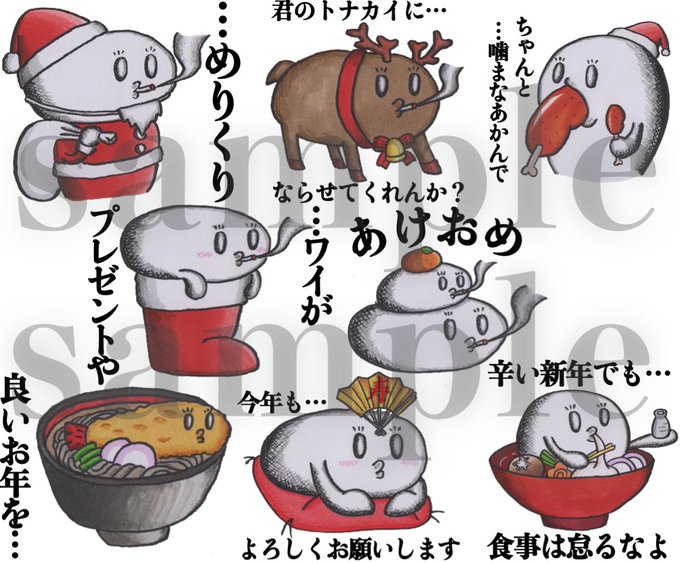 スタンプ[師走・新年編]なんとか申請できました 師走が生きづらい人達に使って欲しい(=゚ω゚)و #LINEスタンプ #落書きギルド #アトリエの系譜 #落書向上委員会 #絵師達 #イラスト王国 #創作の狼煙 #drawing #illustration #art #冬の創作クラスタフォロー祭り #クリスマス line.me/S/sticker/1783…