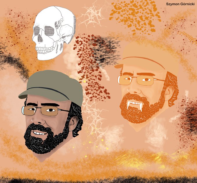 A humorous portrait of a paleoart master - Mauricio Anton @MAntonPaleoart See also interview with him here szymongornicki.com/mauricio-anton/ #interview #paleointerview #people #prehistory #paleontology #dinosaurs #fossils #MauricioAntón #Mauricio #Anton #paleoart #palaeoart #palaeontology
