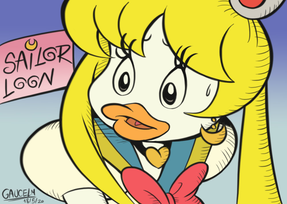 Hey, this is trending! Let me try redraw that with a different kind of Sailor Moon... Sailor Loon! (Starring Disney's Dickie Duck aka Chris Yéyé aka Paperetta Yè-yè) #SailorMoon #sailormoonredraw #sailormoonredrawchallenge
