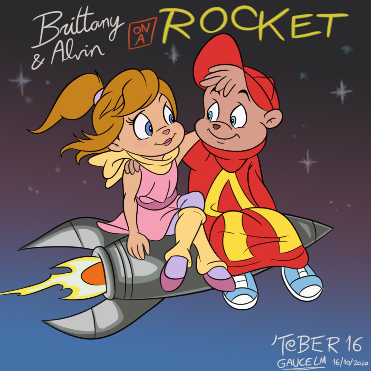 Inktober/Toontober day 16: ROCKET. With Brittany Miller & Alvin Seville, the Chipette and the Chipmunk! #inktober2020 #inktoberday16 #inktoberrocket #NobodyArtistsClub #nobodyartistclub #under500gang #under1kgang #ArtistOnTwitter #alvinandthechipmunks #80scartoons #fanart #art