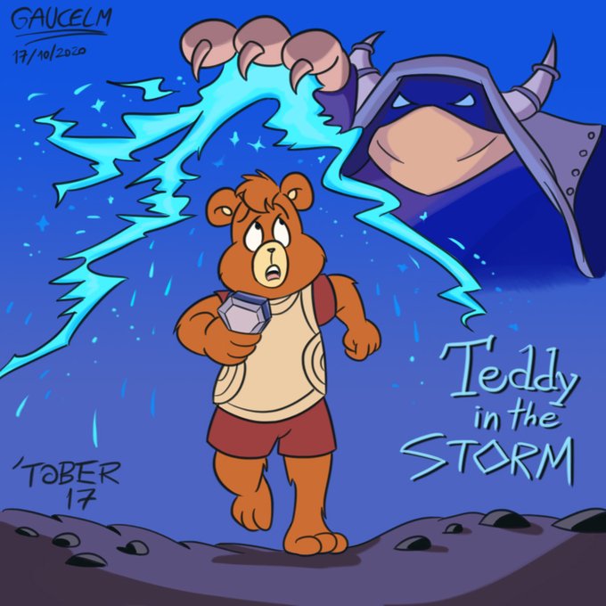 Inktober/Toontober day 17: STORM. Teddy Ruxpin got a crystal but the evil Quellor's after him! #Inktober #inktober2020 #inktober2020day17 #inktoberstorm #toontober #NobodyArtistClub #NobodyArtistsClub #twitterartist #80scartoons #fanart #80stoys #under500gang #under1kgang #art