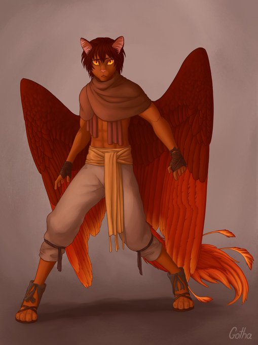 Tlanextic, another OC from my steampunk fantasy setting. More feral representative of winged felidae (inspired by sphinxes and griffins). #originalcharacter #characterart #digitalart #characterdesign #oc #fantasyart #ttrpg #rpgart #WINGS #feline #Anthro #DnDcharacter #dndart