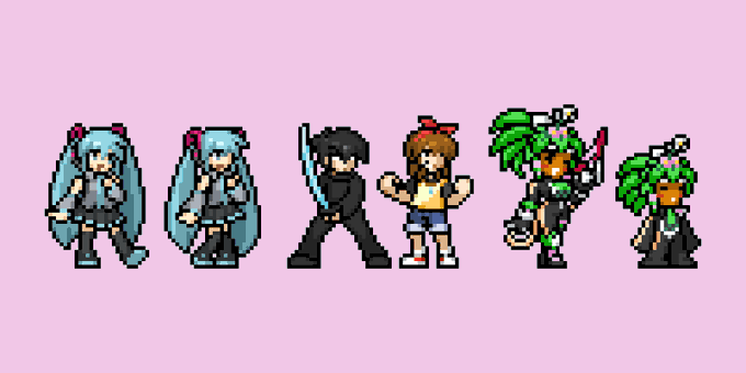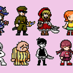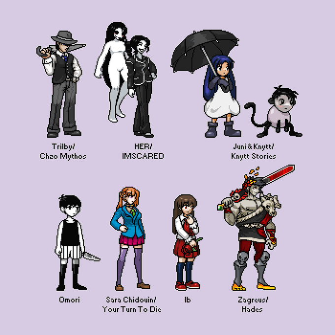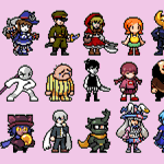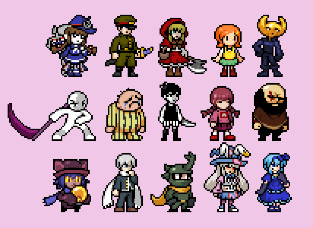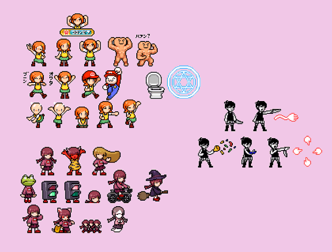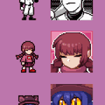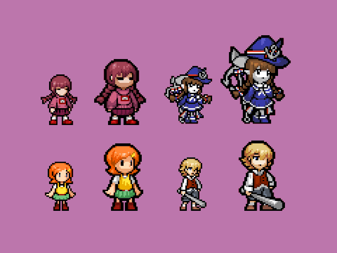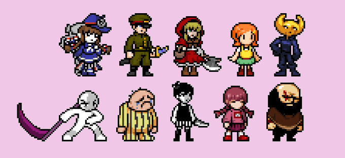 Here's an update on the RPG Maker sprites, now featuring Niko from One Shot, Hiroshi from Ao Oni, Beetle Ninja, Irisu from Irisu Syndrome, and Claire Elford from The Witch's Heart #pixelart#ドット絵