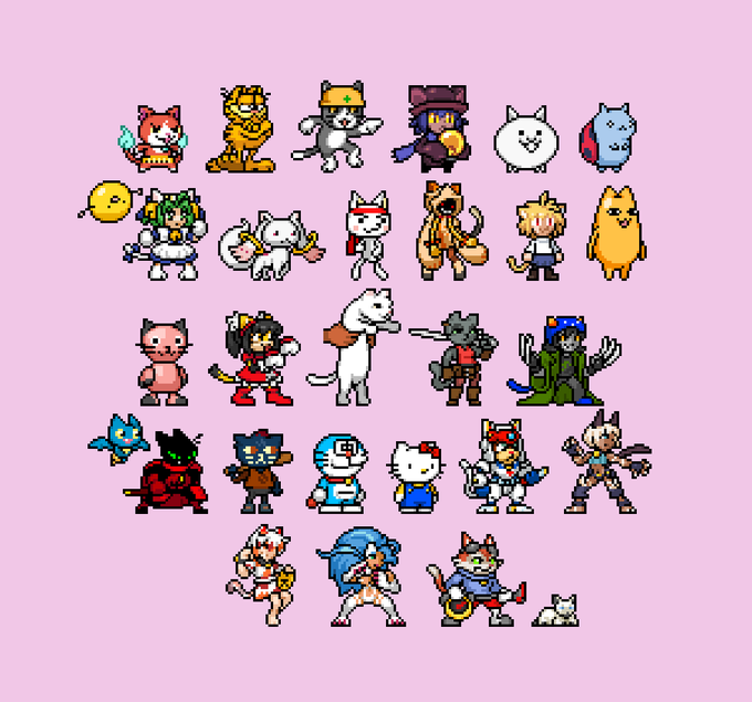 I spent the last half of October making sprites of cats from various pieces of media. I still have plenty of more cats to draw, so stay tuned for that #pixelart#ドット絵