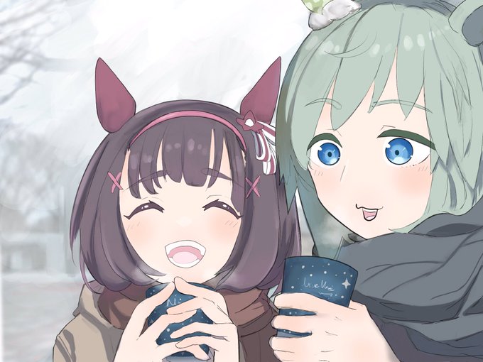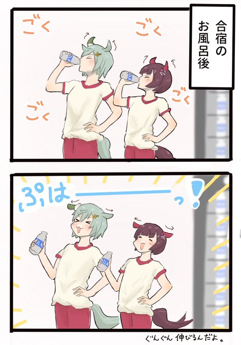 練習後の一杯は格別だね #ウマ娘 #セイウンスカイ #ニシノフラワー #フラウンス