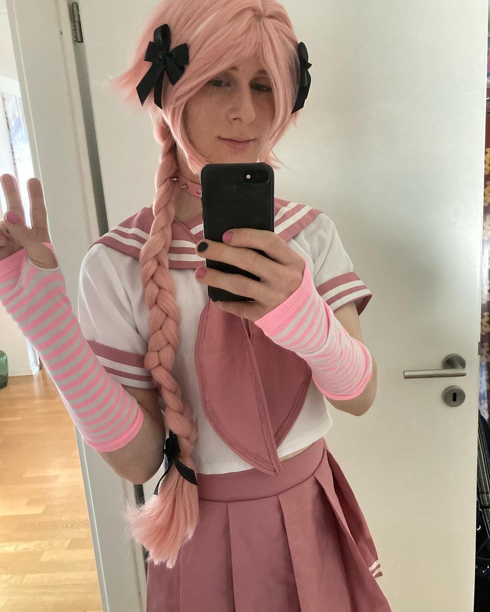 Practiced my #makeup for the #japantag next week :3 perhaps I should add lipgloss though 🤔 I actually really like how I look in these and it gives me hope for the future and my hopefully soon starting transition #astolfo #astolfocosplay #pink #cosplay #nonbinary #cute