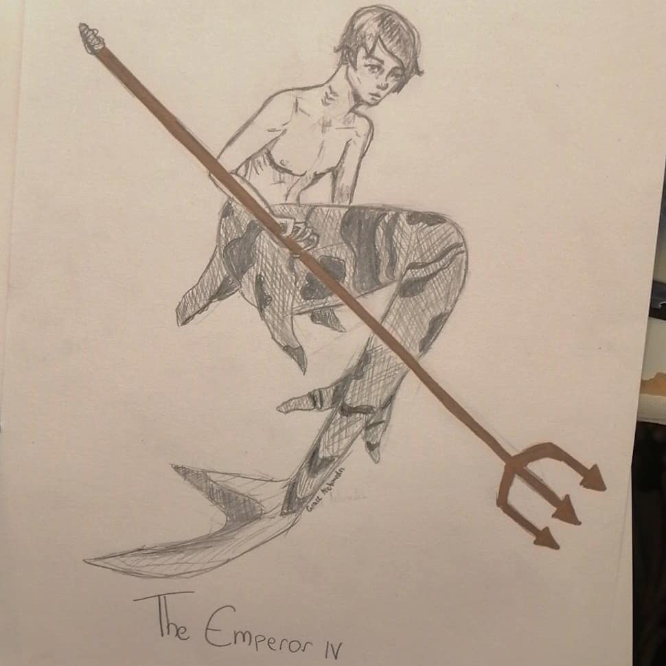 He's finished! My trans merman 😍💖 was meant to ink this but went into hyperfocus in the detailing 😅 The Emperor IV #artist #ArtistOnTwitter #art #artwork #mermay #mermay2021 #transrights #TransMenAreMen #theemperor #tarotart #illustration