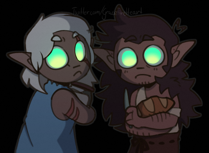 POV: You're Grog, just going to the kitchen to get yourself a midnight snack when you spot your gnome buddies already there, staring at you with their night vision eyes like a couple of cats 👁️👁️ #CriticalRoleFanart #CriticalRoleArt