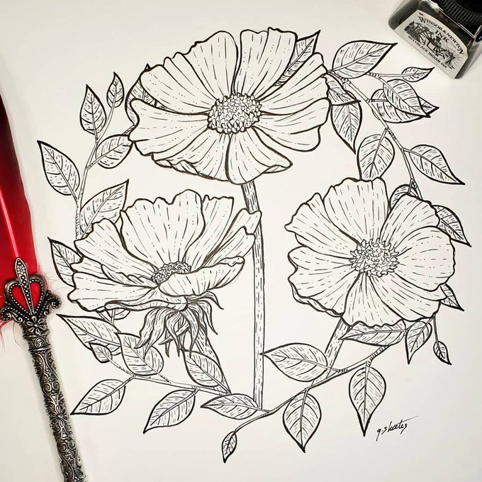 Hello #PortfolioDay I am Grace, an artist and Twitch streamer inspired by nature. I love painting botanicals and animals in watercolour. Currently available for pet portrait commissions. 🌻 graceskeatesart.com 🌱 twitch.tv/gracieghostie 🌸 bio.site/GraceSkeatesArt