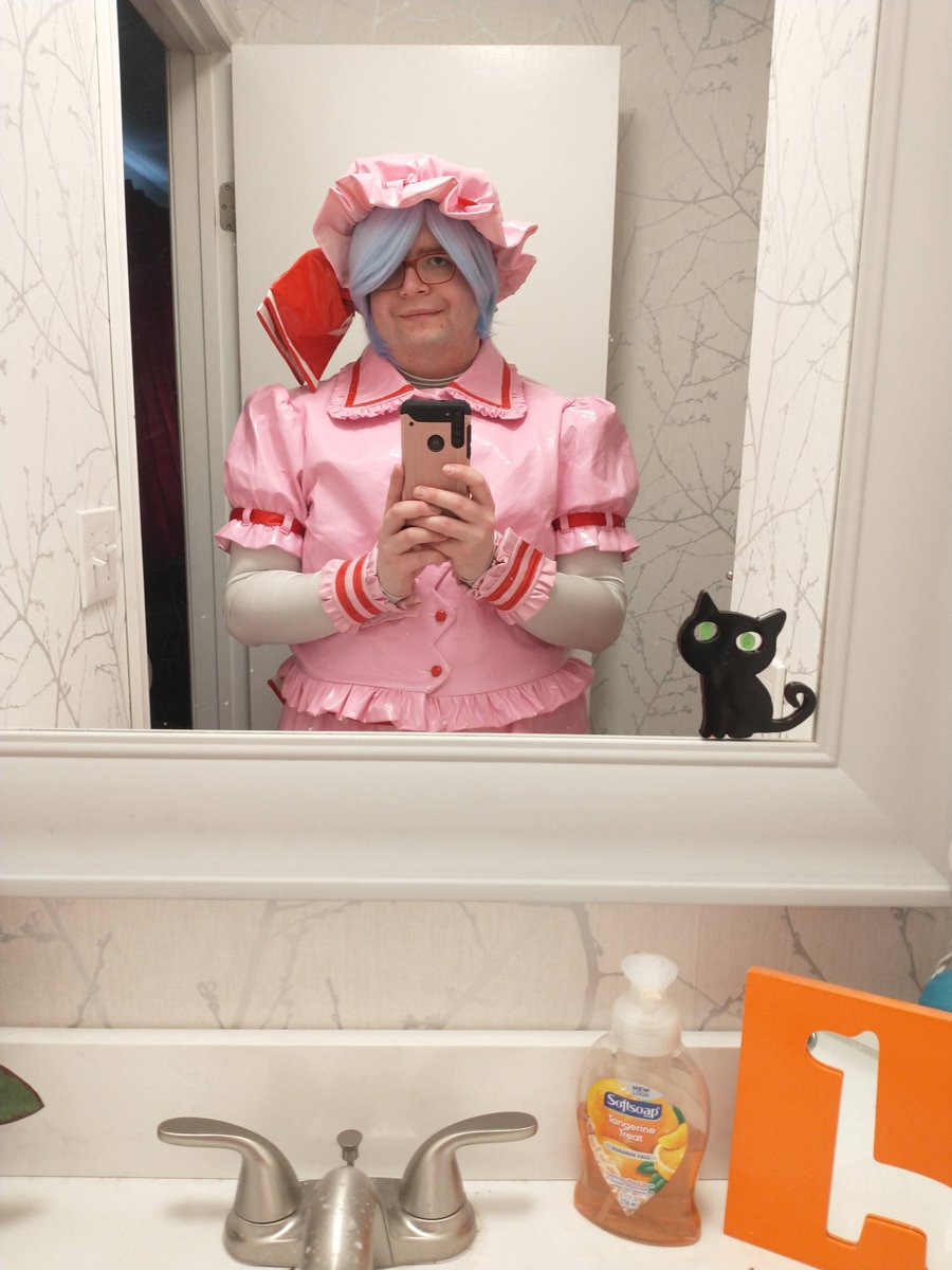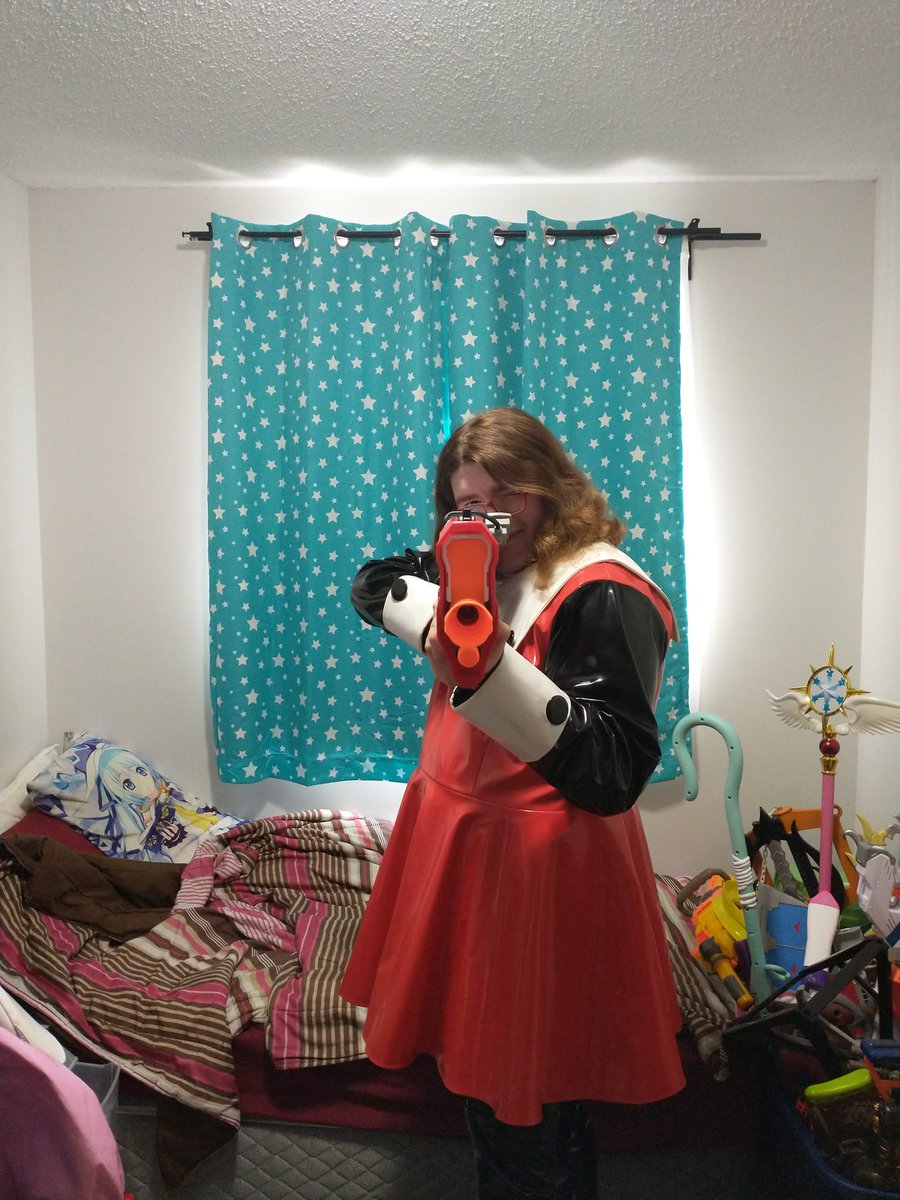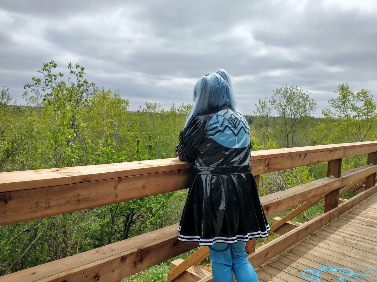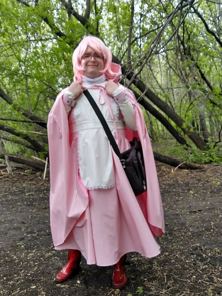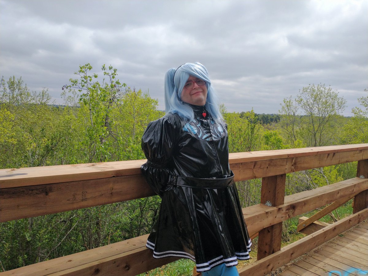 We of course wore it all out for a little walk, with how sweaty it was I was a little worried I wasn't going to be able to get it off lol #PVC #cosplay #schoolgirl twitter.com/GracideaC/st…
