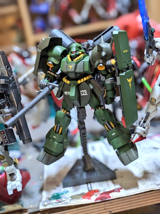 ギラ・ドーガ重装型(もどき) ギラ・ドーガにギラ・ズール(アンジェロ機)のバックパックをポン付けしただけのお手軽改造です #ガンプラ好きとつながりたい #ガンプラ好きと繋がりたい #ガンプラの画像貼るとRTされると聞いて #ガンプラはどんな自由な発想で作ってもいいんだ