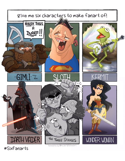 Had a blast taking part in the #SixFanarts challenge! If anyone has suggestions for the next batch, bring ‘em on! #SixFanartsChallenge #FanArtFriday #illustration #DarthVader #gimli #goonies #WonderWoman #muppets