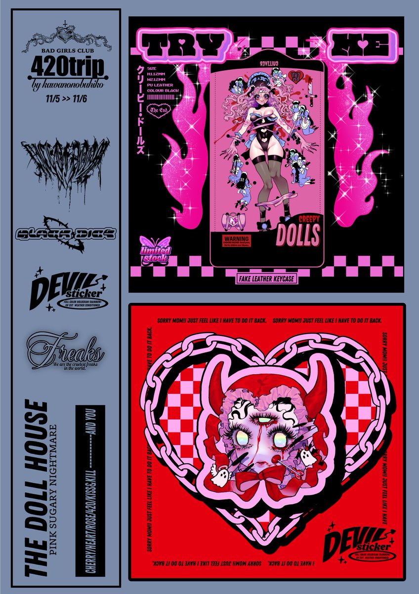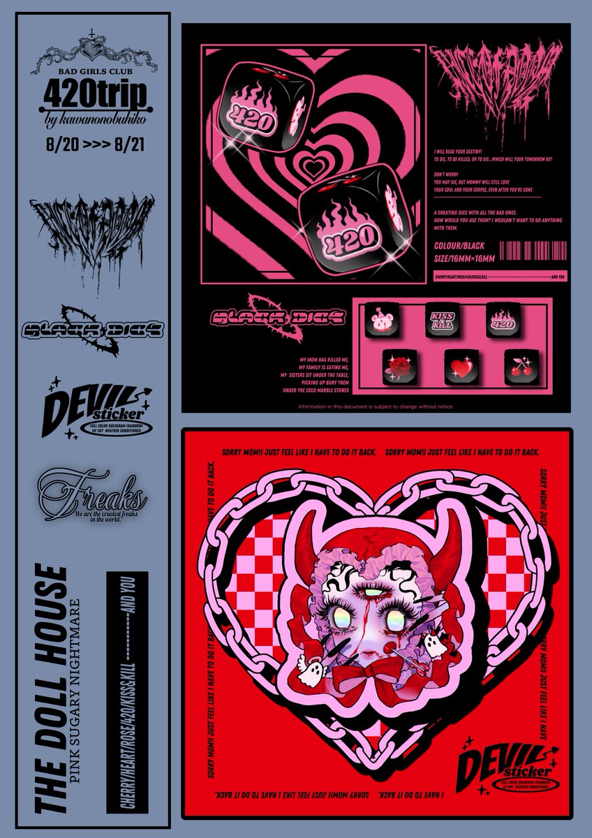💓拡散希望💓 19日までの期間限定で通販を行います⛓ 新作ステッカー類が沢山出たり、懐かしい物も在庫限りの物も沢山出していますので、この機会に宜しくお願い致します🎀💋 800円以上で夏の展示で出ていたフリーペーパー、3000円以上で通販初出しミニステッカーがつきます🎟 420trip.stores.jp