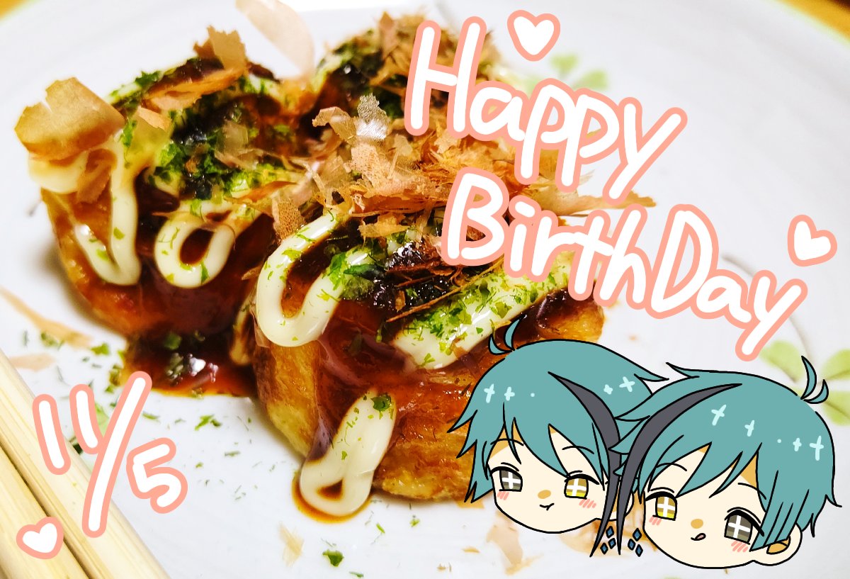 1 5 今日はたこ焼き食べたよ…❤️ お誕生日おめでとう!!🥳❤️❤️ #リーチ兄弟誕生祭2020 #フロイド・リーチ誕生祭2020 #ジェイド・リーチ誕生祭2020 20/11/05 22:51