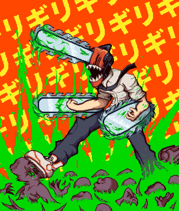girigirigirigirigirigirigiri Commissioned by @TomizBoi!! :D ---- #chainsawman | #chainsawmanfanart | #pixelart | #ドット絵 | #fanart